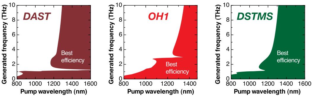 DAST晶体, DSTMS晶体, OH1晶体可产生的太赫兹频谱范围